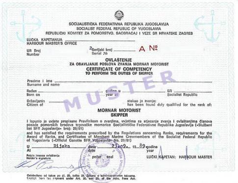 Vor dem Balkankrieg, im ehemaligen Jugoslawien und auch kurze Zeit danach in Kroatien, war die Funkprüfung noch nicht verpflichtend und so wurden viele Küstenpatente ohne Funkberechtigung ausgestellt. Patente aus dieser Zeit haben heute keine Gültigkeit mehr, können aber mittels einer s.g. Funkzusatzprüfung auf den neuen kroatischen Bootsführerschein "Boat Skipper B" erneuert werden.