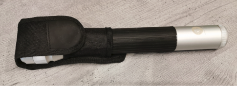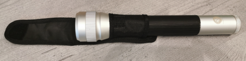 Das Gehäuse ist ca. 31cm lang, aus Aluminium gefertigt und an der Griffzone gummiert. Praktisch ist der mitgelieferte Nylonhalter, mit dem die Lampe am Gürtel getragen werden kann. Der Strahler ist also der ideale Begleiter für nächtliche Landgänge!